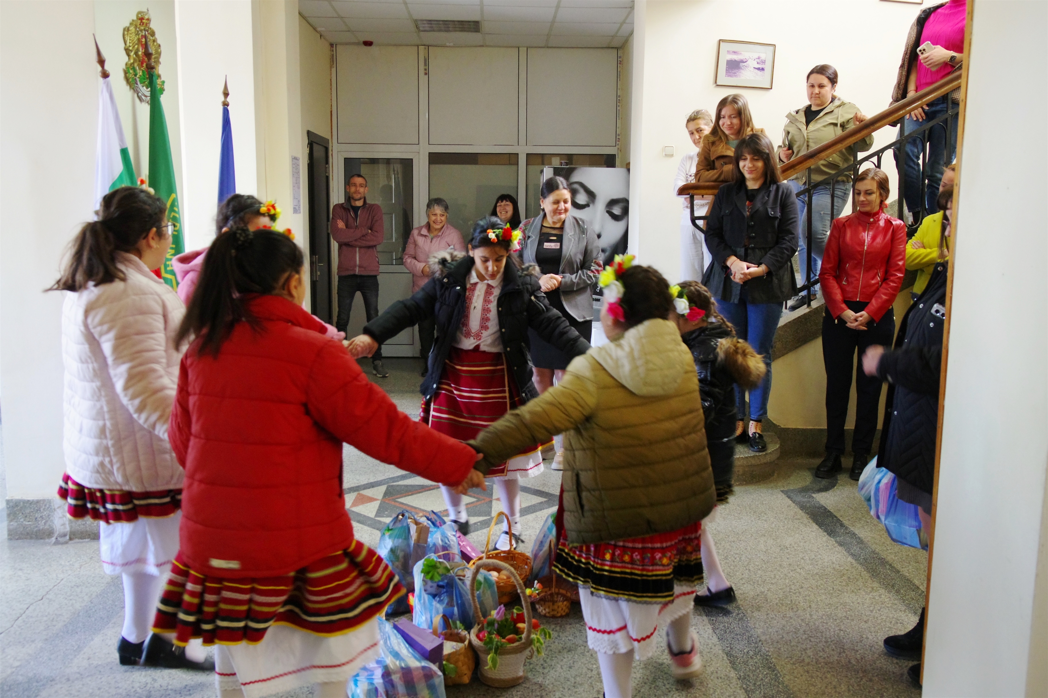 Девойчета, облечени в народни носии и с окичени кошнички,...